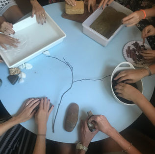 [CM] Após alguns ateliês, fomos convidadas pelo Colégio Alfa, em São Paulo, para ajudar na construção de conceitos e ferramentas para o novo ateliê que estava sendo criado ali. Além disso, ficamos responsáveis por realizar encontros de sensibilização e teoria com as educadoras, em diálogo com o que elas realizavam com suas turmas. Foi uma troca muito linda e potente, porque o contato com a natureza resgata sensações e faz com que todas as pessoas consigam, mesmo adultas, estar no lugar das crianças - de atenção, surpresa, profundidade, conexão e presença.