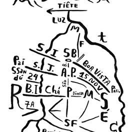 [Laura Belik] Interpretações e reproduções criativas de mapas e mapeamentos tem sido parte do seu trabalho há anos. Você poderia nos contar sobre alguns de seus últimos projetos e produções que conversavam com esse tema, como a sua proposta original para Bienal de Arquitetura de São Paulo, projeto no Sesc Araraquara, dentre outros?